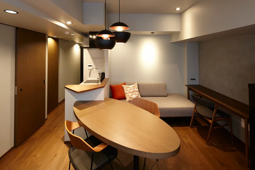 「つどう・こもる・くらす 自由で気ままなプライベートホテル」をコンセプトに都内で展開しているCOCOSHUKUは全室にキッチン、レンジ、調理器具や食器・カトラリーなどが完備されています。また共有部にはランドリーも備わっており中長期滞在の方にもおすすめのホテルです。