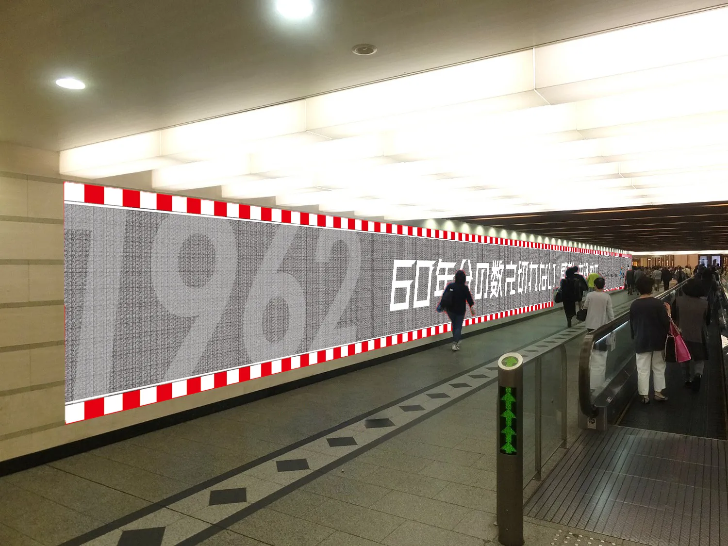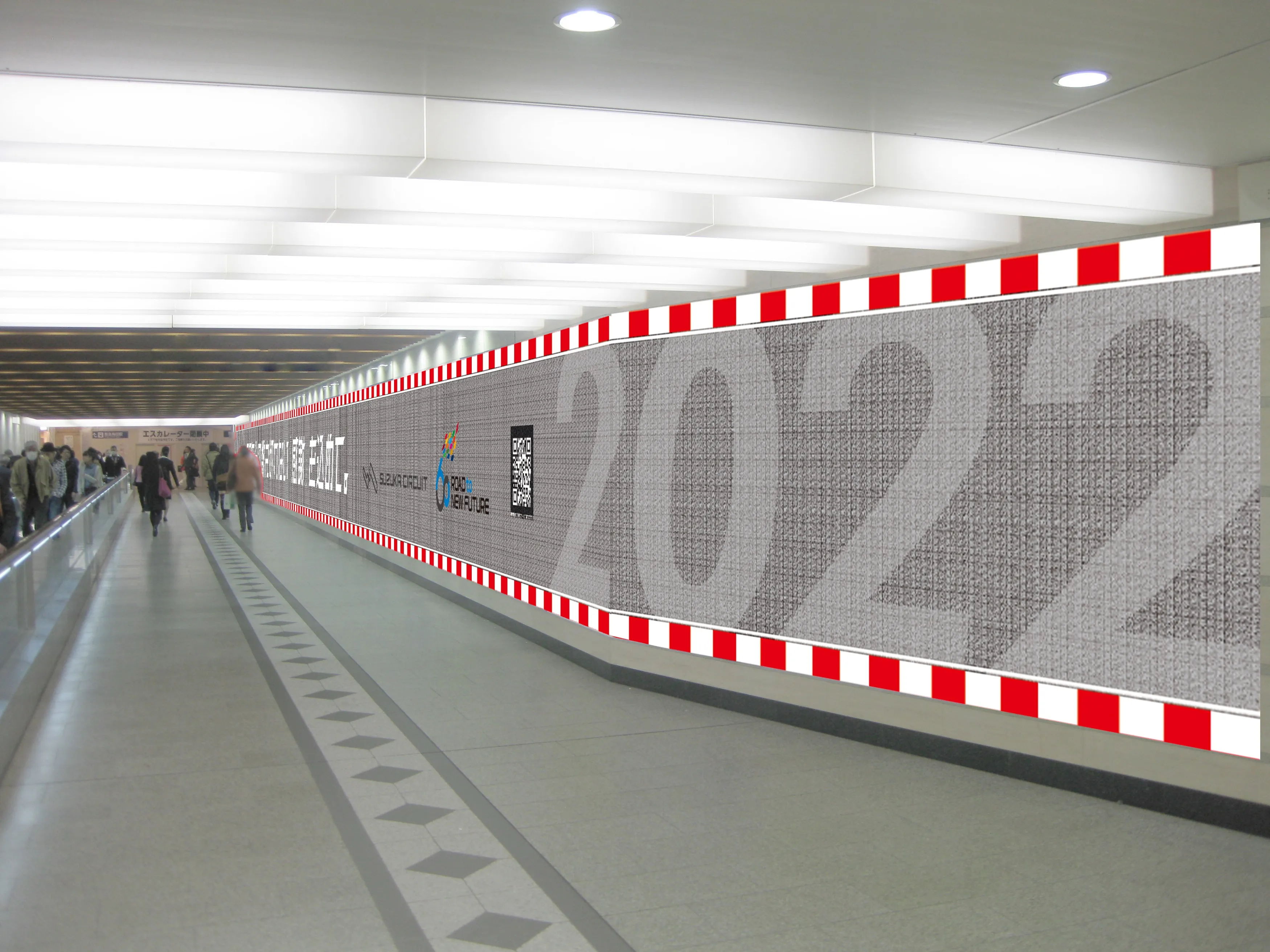 本プロジェクトの一環として、3月21日(月・祝)から、阪急電車の大阪梅田駅構内にて、B0ポスター60枚分、全長約44mに及ぶ交通広告を掲出いたします。