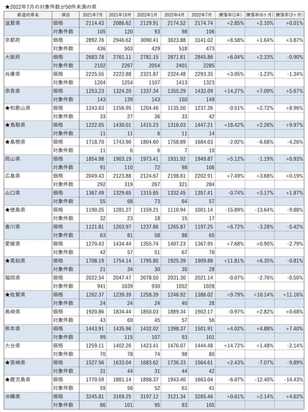 ※2022年7月の対象件数が50件未満の16県については、算出根拠となるデータ数が少ないため★をつけて掲載。
