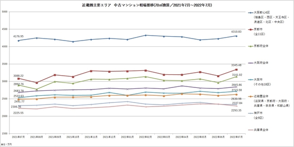 ■全国主要エリア 中古マンション相場推移(2021年7月~2022年7月) 首都圏・近畿圏