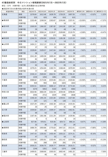 ■47都道府県 中古マンション相場推移(2021年7月~2022年7月)