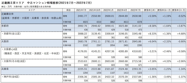 「マンションレビュー」2022年7月 全国主要エリア/47都道府県 中古マンション相場推移を発表
