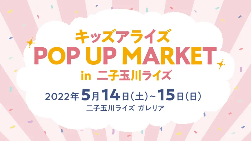キッズアライズを運営する株式会社工芸社(所在地:東京都新宿区、代表取締役:坂本 浩)は、子どもと一緒に楽しめる企画が盛りだくさんなイベント『キッズアライズ POP UP MARKET』を2022年5月14日・15日に東京都・二子玉川ライズ ガレリアにて行います。