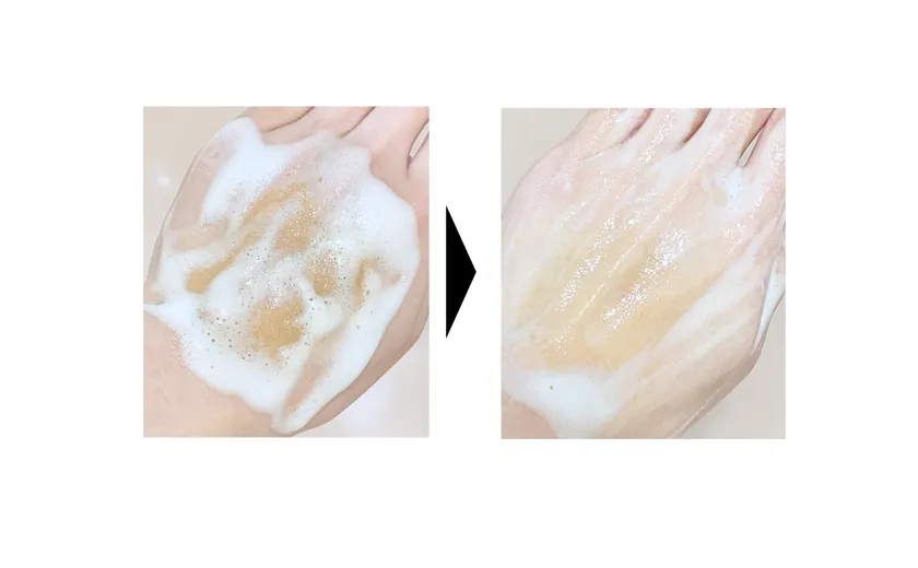 ポンプを押すだけで簡単に出るふんわり濃密泡をなじませると、徐々にクリーム状に変化!クリームがメイクや余分な皮脂、汚れを吸着します。ゴシゴシこすらず落とすので、肌に負担をかけません。洗いあがりの肌環境を考え、肌ケア保湿成分※1も配合し、潤いのある素肌に洗い上げます。