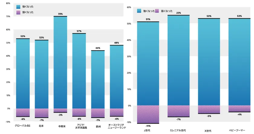 ●日本の従業員の37%が、パンデミック前と比較して仕事よりも健康やウェルビーイングを優先する傾向が強まったと回答(グローバル平均:53%)
