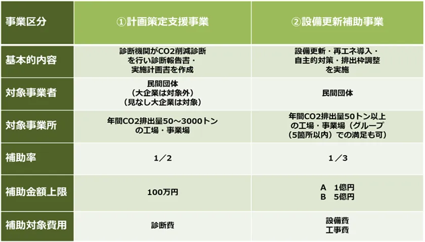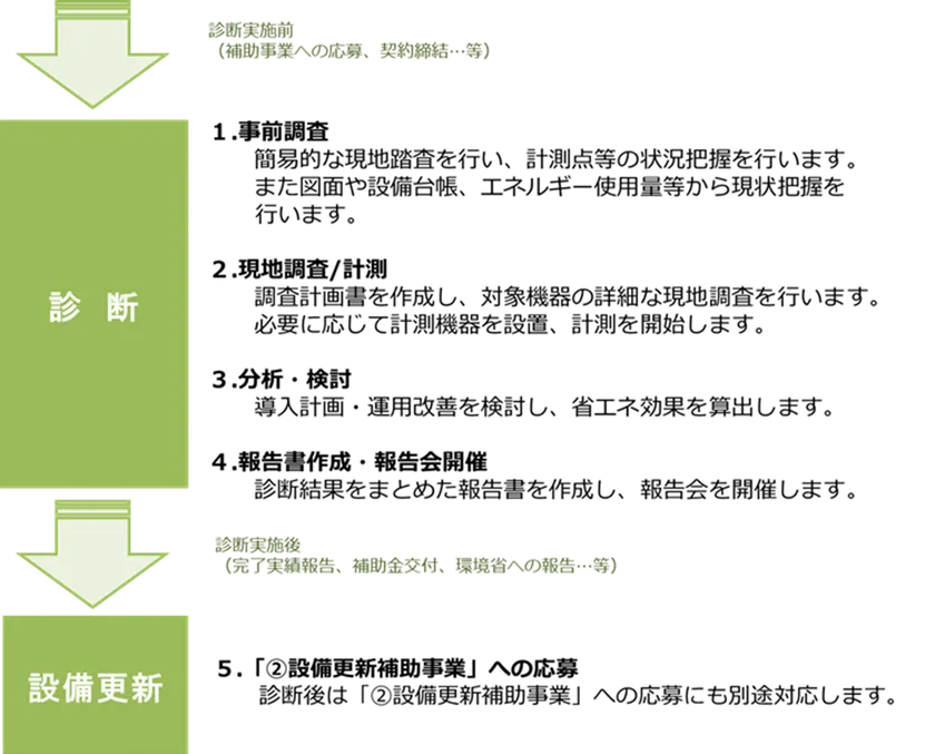 省エネ診断(計画策定)と設備更新補助事業応募の流れ