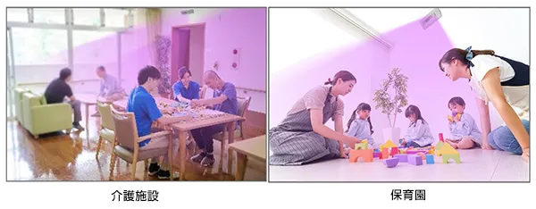 iTevio222は、有人環境下で直接照射が可能なため、病院やホテルのほか百貨店やイベント会場など人が集まる空間に広く展開することを見込んでおります。また、iTevio222は、無線通信用インターフェイスの搭載や、将来の車載向け機器への改良を考慮した拡張性を有しており、今後開発を予定している車載用モデルは、電車やバス、運送用トラック、介護用車両向けへも搭載可能です。