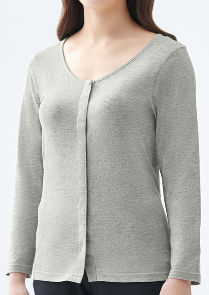 「前あきインナー」は授乳のとき、入院のとき、腕が上げづらいなどの場面で便利なインナーで、「前あき ラクブラ」「2分袖クリップインナー」「8分袖クリップインナー」をラインアップ。独自の設計で脇接ぎの縫い目をなくし、少ない力で開け閉めしやすい大きめのスナップボタンで、肌へのやさしさと着やすさにこだわりました。乾燥機対応なので、お洗濯の負担も軽減しています。