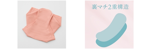 「吸水ナプキン対応ショーツ」は、女性の3人に1人が経験すると言われている「尿漏れ」に対応した吸水ナプキンとセットで着用いただけるショーツです。吸水ナプキン使用時の漏れやズレ、ごわつきなどのお悩みを解決するため、グンゼオリジナル技術応用の二重構造マチで、ナプキンを体にフィットさせてズレを防止。肌側の生地でナプキンからのもしもの漏れを吸収、外側の生地には漏れ出しにくい撥水加工を施しています。