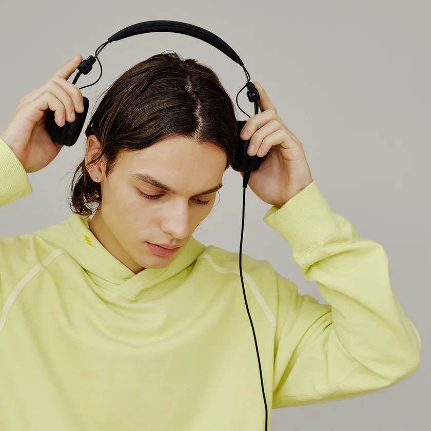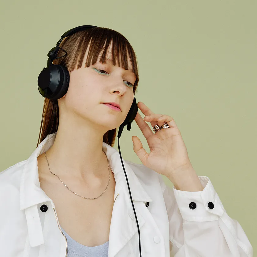 長時間のDJセットに対応した軽量でしなやかな構造設計により、演奏中もストレスを感じさせない装着感を実現しました。136gのDJヘッドホン(コードを除く)は、人間工学に基づき、頭部、首、肩への負担を極限まで減らす軽量設計がされています。イヤーカップやヘッドバンドの重さ、ヘッドクッションの幅と厚さは快適なつけ心地に配慮した細かな調整が施されています。また、コードは強度と軽量化を両立する線経にし、カールコードのカール部分の位置も微調整することで、重量バランスを最適化しました。さらに、ステンレス素材のヘッドバンドはスリットを加えた梯子状の構造になっているため、ねじれに強くしなやかでさまざまなモニタリング方法に対応します。
