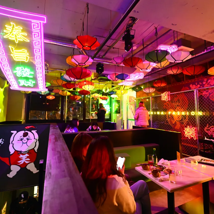 ネオン煌めく妖艶な店内にて最前線で活躍するDJによる選曲や、専属ダンサーによるショーなど極上のエンタメとともに、お食事をお楽しみいただけます。