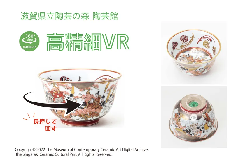 滋賀県立陶芸の森 陶芸館では、令和2年度から所蔵品と展覧会のおすすめ作品を紹介するデジタルコンテンツの制作に取り込んできました。このたび、信楽窯業技術試験場の技術協力を得て、専用3Dデジタルアーカイブサイトを開設し、その成果の一部を2022年3月5日より公開しています。