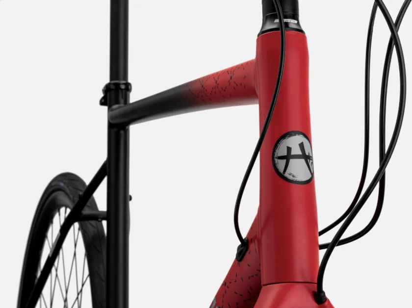 新製品の『Quick 3 Rui Edition』は、八村選手のブランド「Black Samurai(ブラックサムライ)」に使用されている八村選手の母親がデザインした“八”ロゴをヘッドチューブとシートクランプ下に施し、マッドブラックからラリーレッドにフェードの効いたデザインが特徴です。各所にアクセントとして配置されたパターンは、日本の伝統的な麻の葉文様を使用。複数の三角形が組み合わさることで、より大きな六角形を形成。三角形、そして六角形は自然界では、最も力強いシェイプと考えられており、その力強さと美しさを表現しました。八村選手のこだわりを各所に散りばめたキャノンデールのデザインチーム渾身の1台です。