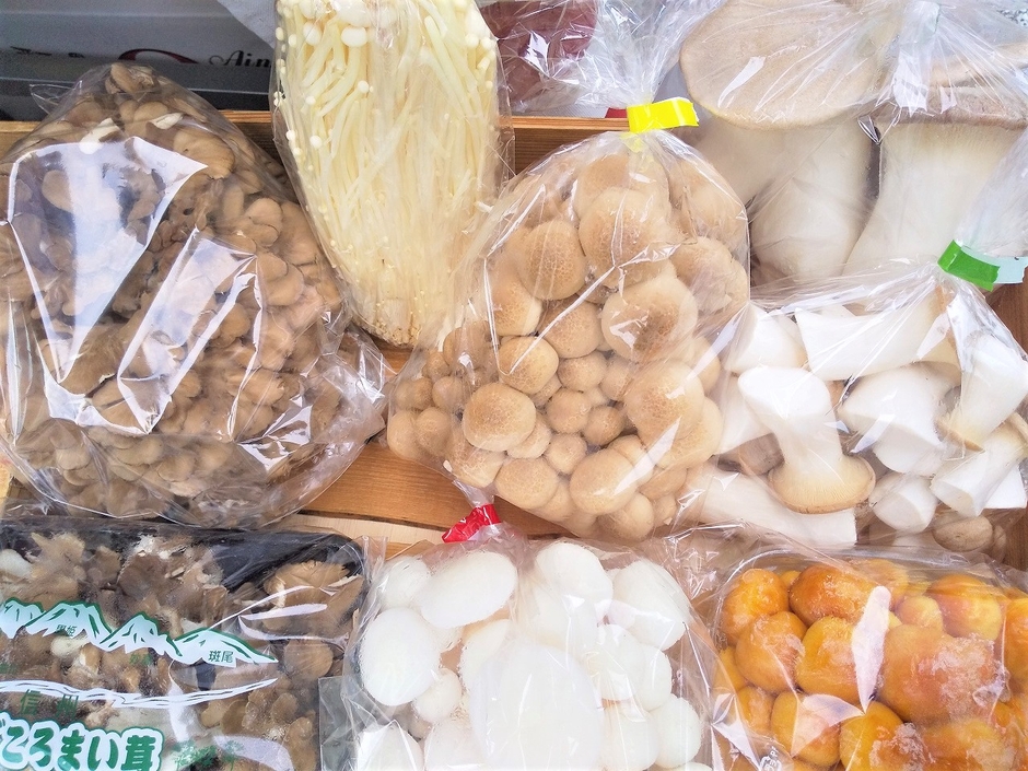 信州の旬の果物や野菜、きのこやお焼きなど、滋味あふれる商品が並ぶ信州食材の専門店。