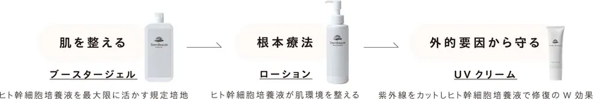 そして紫外線から肌を守るだけでなく、美肌へと導くヒト幹細胞培養液配合のUVクリーム。