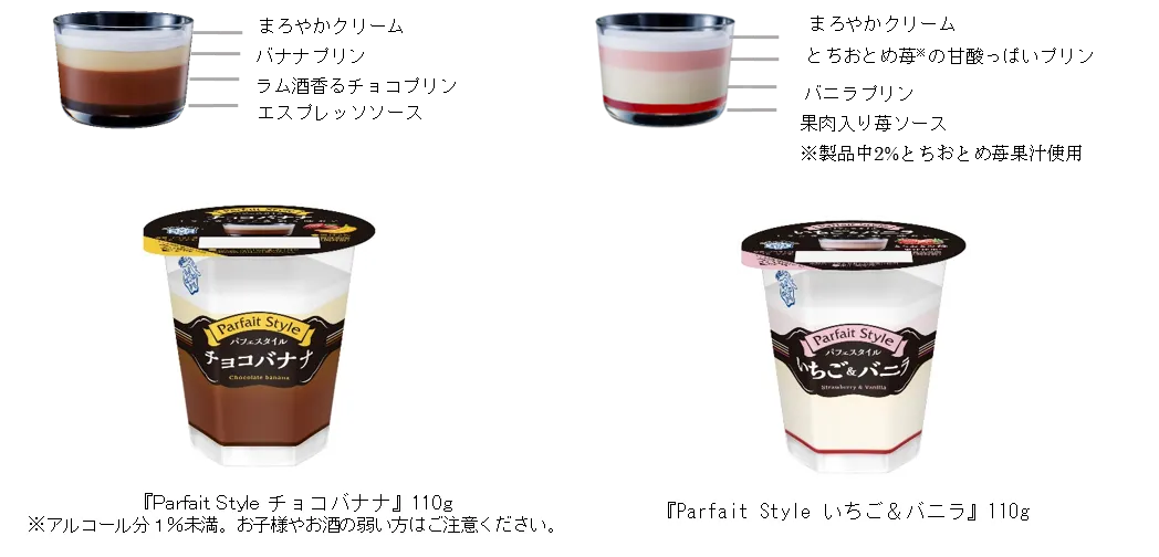 ひとつのカップで多彩な味わいが楽しめる! 『Parfait(パフェ) Style(スタイル) チョコバナナ』 『Parfait(パフェ) Style(スタイル) いちご&バニラ』(各110g) 全国にてリニューアル発売!