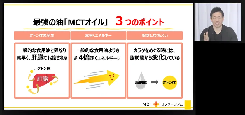 講演:無理なく、脂肪燃焼体質をつくる「MCTオイル」とは
