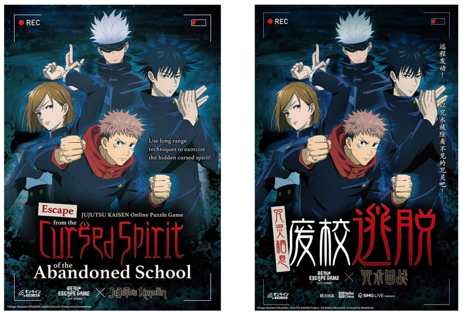 世界中で820万人以上を熱狂させている“リアル脱出ゲーム”を企画運営する、株式会社SCRAP(所在地:東京都渋谷区、代表者:加藤隆生)と、現在、劇場版上映中の大人気TVアニメーション「呪術廻戦」がコラボレーションしたオンラインで行うリアル脱出ゲーム『呪霊褄まう廃校からの脱出』の英語版、中国語簡体字版が、世界6カ国で販売を開始したことを発表いたします。