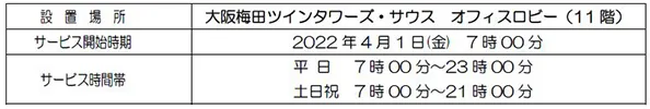 今回の設置により、梅田エリアへの設置は11ヶ所(17台)となり、ますます便利にご利用いただけます。