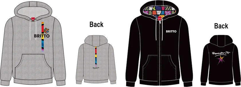 「希望」や「幸せ」を表現したロメロ・ブリット氏の作品をプリントデザインとして用いた洋服を着ていただき、日常シーンをさらに楽しく元気づけたいとの思いから、「BRITTO」は誕生しました。アートを気軽に日常に取り入れることで、たくさんの人々が笑顔と幸せに包まれる世界、平和な世界が広がってほしいという願いが込められ、世界的に暗いムードが続く今こそ、普段から着用される服がアートの力で明るく元気に、笑顔になるお手伝いをします。