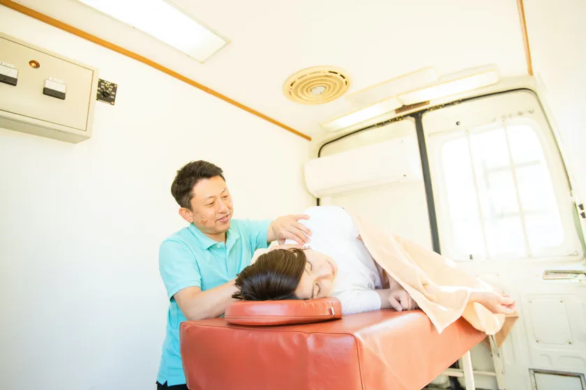 スタッフみんなが肩こりに悩んでいるのをみて少しでも改善してあげたくて、ケアバスYONDEYAを呼びました。施術を受けて、スタッフも自分自身も短時間で肩こり改善!スッキリしました!スタッフからも「肩や首が楽になる」「スッキリして仕事の生産性が上がる」「ツボをギュッと突いてもらえる」「仕事へのメリハリがつく」「施術者のスキルが高い」など皆リピートしたいと絶賛でした!頑張るスタッフ達にYONDEYAを活用してもらうと、身体がシャキッとして業務が捗ると思います。健康な身体を手に入れる事で、皆の笑顔が増えます。社内の定期的なメンテナンスとして最高です。