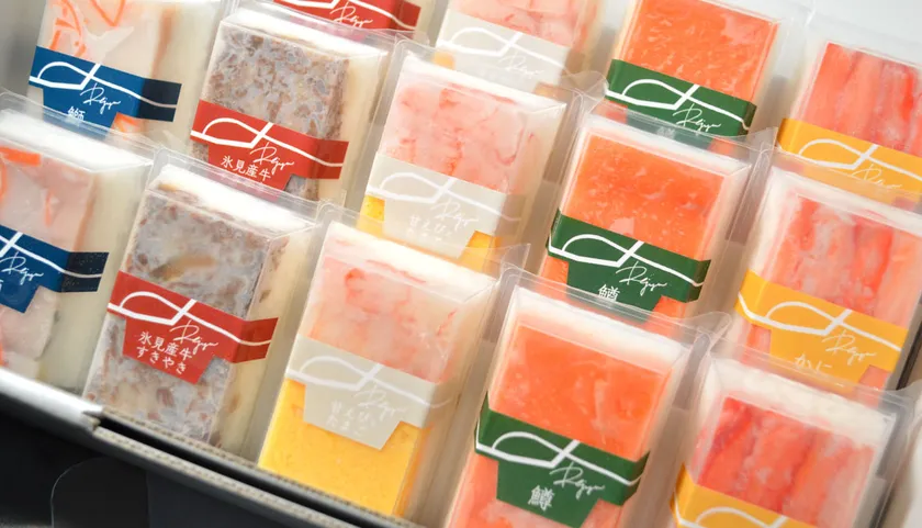 賞味期限は家庭用冷凍庫にて1ヶ月ほど。冷凍とは思えぬ、鱒などの生ネタの食感や味わい、お米の甘味を保つことが出来ます。一般販売に向け、賞味期限の延長と新しい種類の研究にも着手しております。