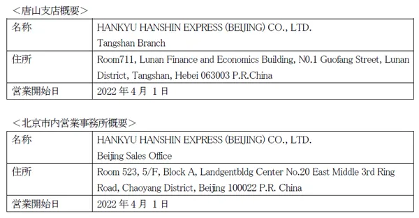 当社中国法人であるHANKYU HANSHIN EXPRESS (BEIJING) CO., LTD.は、河北省唐山市に支店を設立する一方、首都北京の中心部に新たに市内営業事務所を開設し、4月1日より営業を開始します。