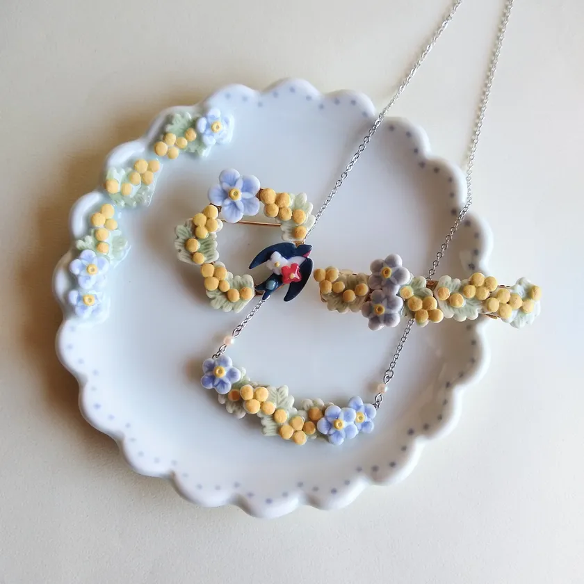 陶磁器のアクセサリーとお皿 by nonojiko