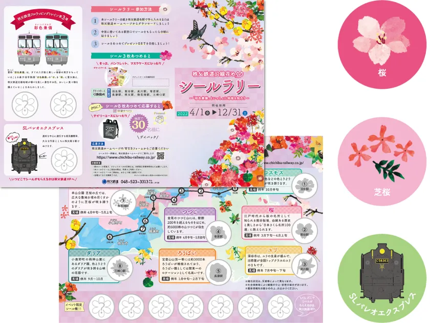 4/1~12/31「秩父鉄道沿線花めぐりシールラリー」開催 ラッピングトレイン「彩色兼備」と 埼玉県北西部・秩父地域を知ろう