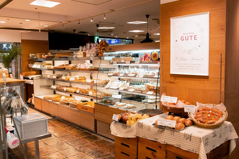 また神戸グーテは2022年2月にリニューアルオープンしております。店舗内装をリフレッシュし、店舗と工房を一緒に併設。店舗には80種類以上の商品が並び、店舗内工房から常に焼き立てパンが並びます。40席を超えるイートインでは、焼き立てのパンを食べれるほか、サンドウィッチやグラタンなどベーカリーカフェならではならではのメニューを多数そろえています。