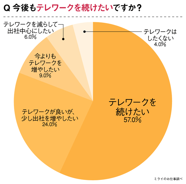 今後、テレワークは定着していくのでしょうか。現在テレワークをしている方々へ「今後もテレワークを続けたいか」を聞きました。