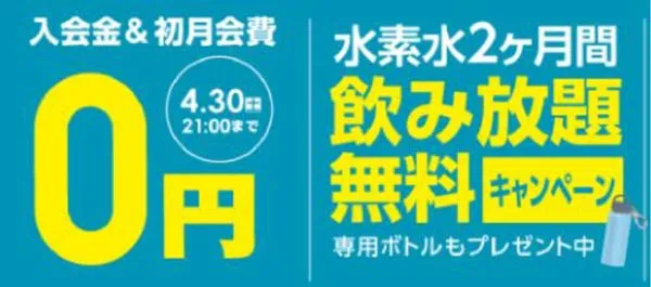 ※入会金・初月会費0円&水素水2ヶ月間飲み放題無料キャンペーンは3月、4月又は5月1日にご利用開始の方が対象です。