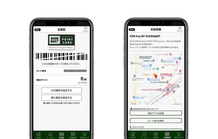 図2 会員証/お店詳細の画面ショット