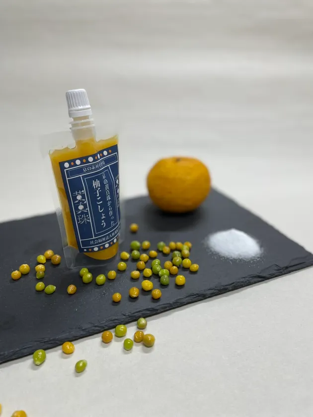 新京野菜「京の黄真珠」の選別過程で取り除かれた未完熟の実を使用、就労継続支援B型事業所 飛鳥井ワークセンターが新しく柚子胡椒を開発しました。