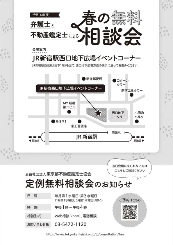 令和4年度 弁護士と不動産鑑定士による“春の無料相談会” を新宿西口広場イベントコーナーにて4月22日(金)10時から開催