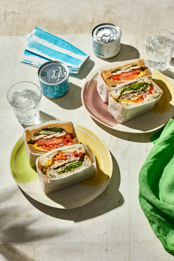 イチオシのサバ缶とベストマッチなオリーブオイルをマリネしレモンでさっぱりと仕上げ、8種類の彩り野菜が目でも楽しめる栄養満点のサンドイッチ。