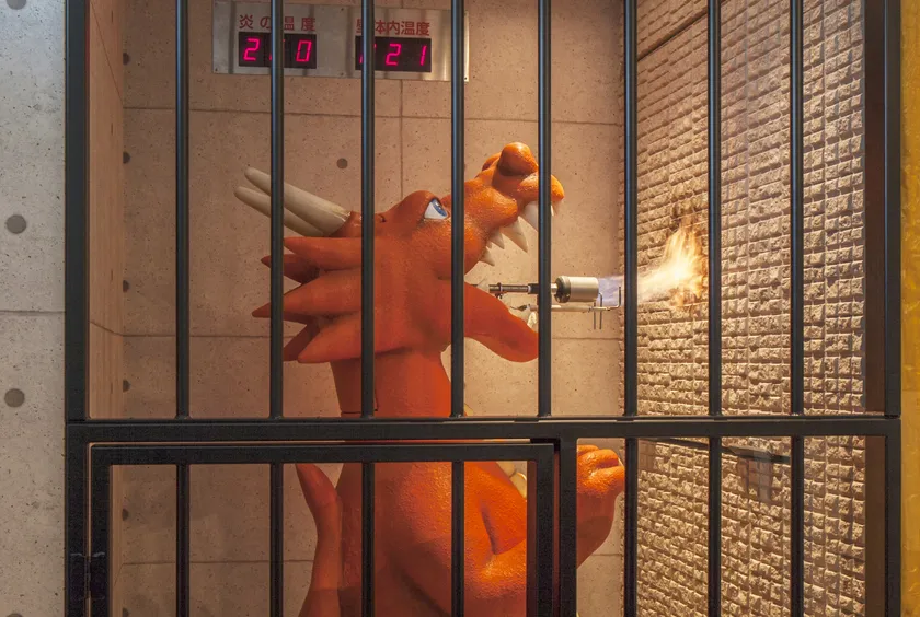例えば、隣の家が火事になった場合にもらい火を防ぐ耐火性を体感するエリアでは、火を噴く怪獣が家を襲う設定にしてみたり、外壁の地震に対する工夫を見るエリアでは、巨大なゴリラが家を揺らした想定で、その強さを家族そろって感じてもらったり…。