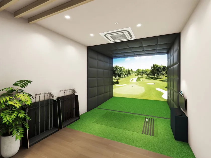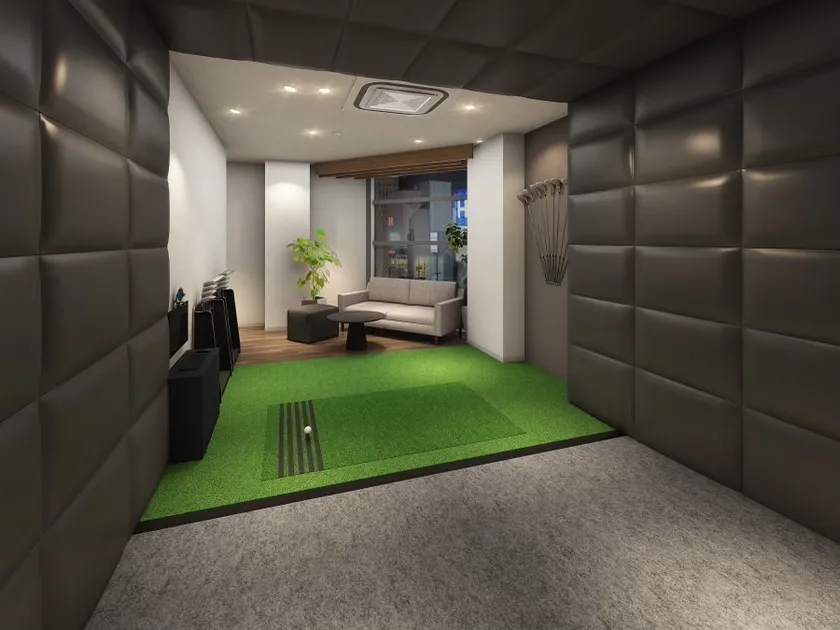 1号店は銀座にふさわしいワンランク上のホテルライクな2つの完全個室のラウンジに、話題のゴルフクラブ、そして骨格に合ったアドレスやスイングを診断するAI搭載アドレス・アナライザー*を備えています。