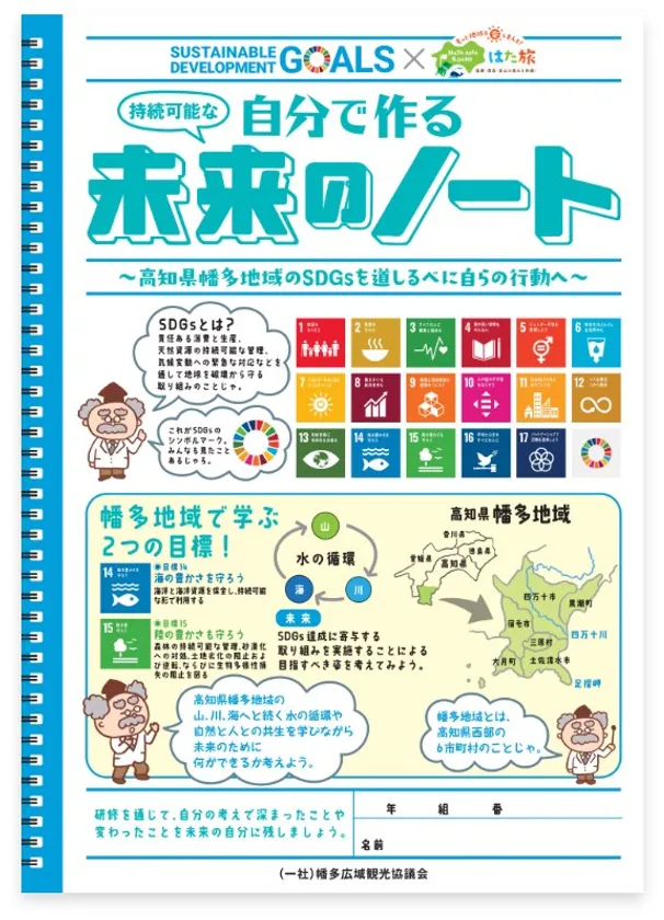 特に、幡多広域観光協議会が独自に作成した教材「自分で作る未来のノート」は、教育界の中でもニーズが高まっています。このノートは、修学旅行中に学んだことを、普段の生活に戻ってからも、持続できるようにと考えられているのが特徴です。