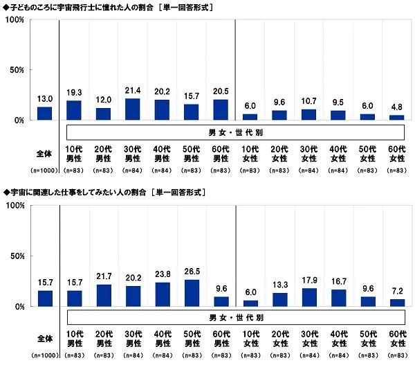 ◆「子どものころに宇宙飛行士に憧れた」30代男性の21%