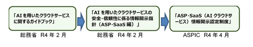 クラウドサービス情報開示認定機関である一般社団法人日本クラウド産業協会(呼称:ASPIC、東京都品川区西五反田、会長:河合 輝欣、詳細:参考資料)は、こうした動向を踏まえ、総務省公表のガイドブック、情報開示指針に則った安心・安全なAIクラウドサービスであることが確認可能な情報を開示していることを認定するため、新たに「ASP・SaaS(AIクラウドサービス)の安全・信頼性に係る情報開示認定制度」を令和4年4月1日に新設しました。
