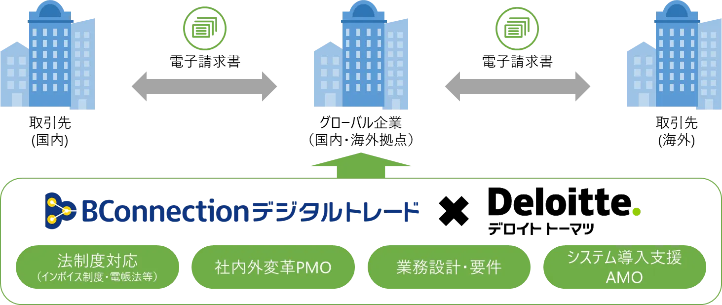 デロイト トーマツのグローバル企業向けに請求書業務DXを推進するコンサルティングサービスにおいて「BConnectionデジタルトレード」を提供
