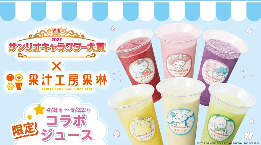 青木フルーツホールディングス株式会社(本社:福島県郡山市、代表取締役会長兼社長:青木 信博、以下 青木フルーツHD)は、株式会社サンリオ(本社:東京都品川区、代表取締役社長:辻 朋邦、以下 サンリオ)が開催する人気投票企画「2022年サンリオキャラクター大賞」とコラボし、対象商品購入で「2022年サンリオキャラクター大賞」に投票できる企画を全国の果汁工房果琳 他188店舗(4月1日時点)にて4月8日(金)から5月22日(日)の期間限定で実施いたします。