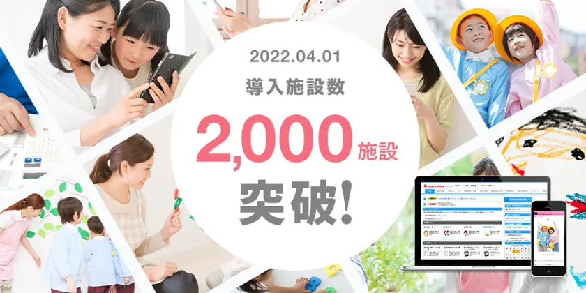 2010年12月16日にリリース以降、園務負担を軽減する機能を拡充してまいりました。導入施設からも長くご支持をいただき、2022年4月1日現在、導入実績は2,000施設を突破し、約52万人の保護者の皆様にご利用いただいています。