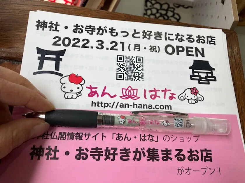 そして、2022年3月21日(月・祝)には、神社仏閣をテーマにしたコンセプトショップとなる神社仏閣情報ショップ「あん・はな」を、奈良県生駒市駅前にある「ぴっくり通り商店街」にオープンしました。