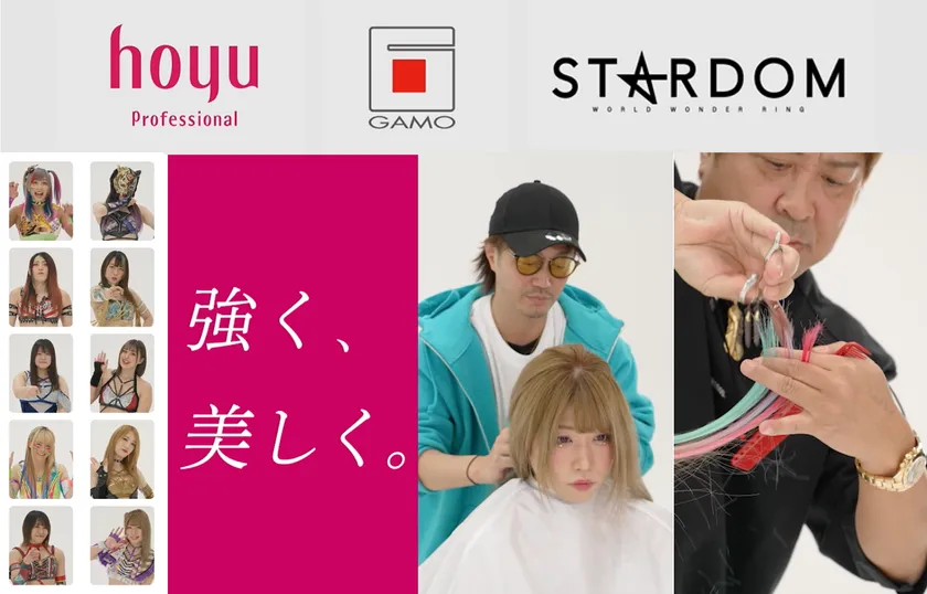 ヘアカラーを中心に理美容室向けの商材を取り扱うホーユープロフェッショナルカンパニー(所在地:愛知県名古屋市、代表取締役 社長執行役員:佐々木 義広)と、総合美容商社の株式会社ガモウ(所在地:東京都港区、代表取締役執行役員会長:蒲生 茂)がタッグを組み、美容業界を盛り上げる企画として、美容師と女子プロレスラー団体STARDOMとのコラボCMを4月18日より掲載開始します。