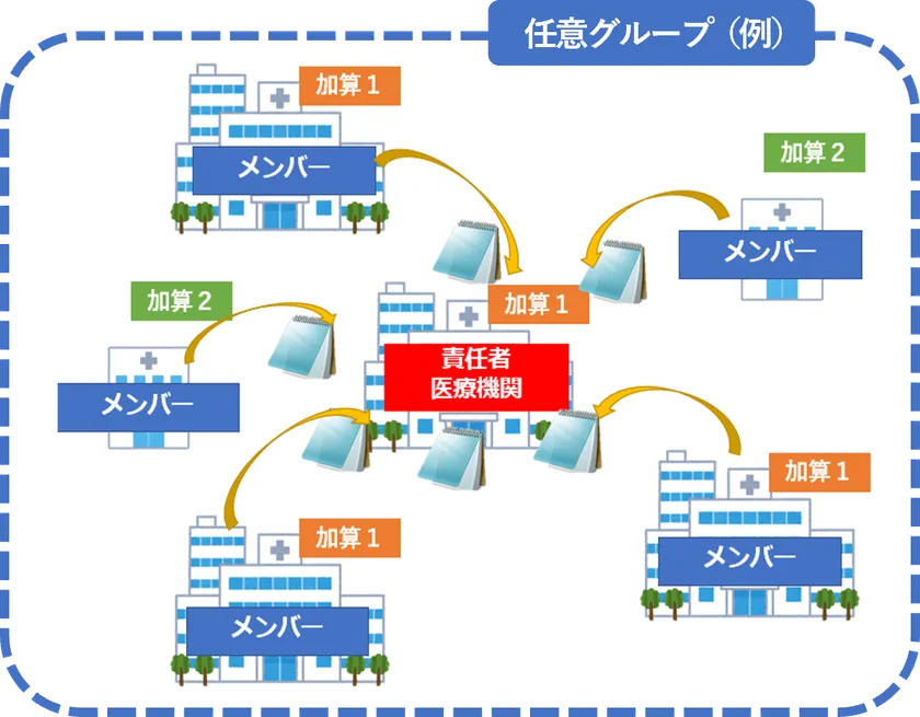 複数の基本グループの情報をまとめて地域全体の状況を知るために活用したり、独自のネットワークや関連病院による任意グループを作って情報共有と感染対策の向上に活用することができます。