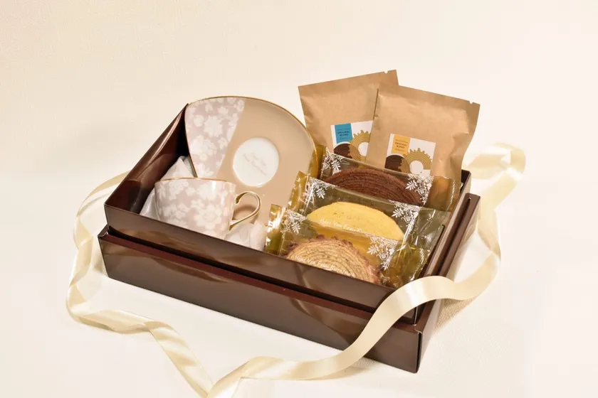 この春から販売するオリジナルカップ&ソーサーを母の日限定仕様にし、バウムクーヘンとオリジナルドリップコーヒーをセットにした母の日ギフトをご用意いたしました。