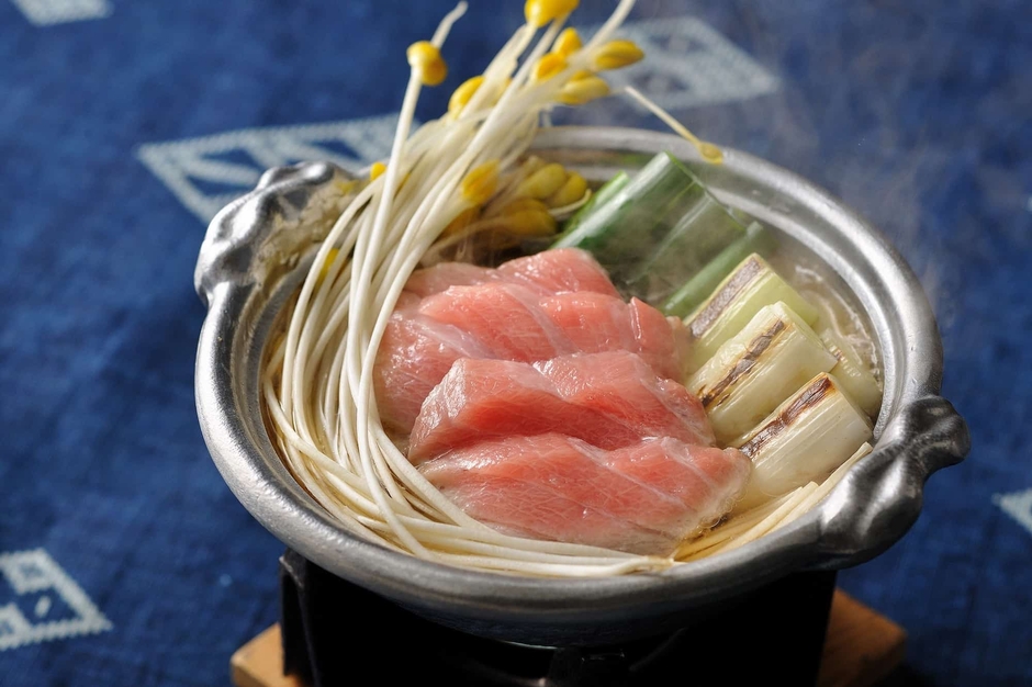 豊かな漁場に囲まれ、贅沢な海産物が揃う青森県。とりわけ津軽海峡で獲れた大間産まぐろは「黒いダイヤ」と呼ばれ、 名実ともに鮪の最高峰と言われています。その大間まぐろを使った秋の特別会席では、素材の味をそのままお楽しみいただくお造り、赤身や中トロの握り寿司など、この時期だけの大間まぐろを存分にご堪能いただけます。台の物には、「ねぎま鍋」を提供します。漬け鮪の小丼にかけて、お茶漬けにするのもおすすめです。