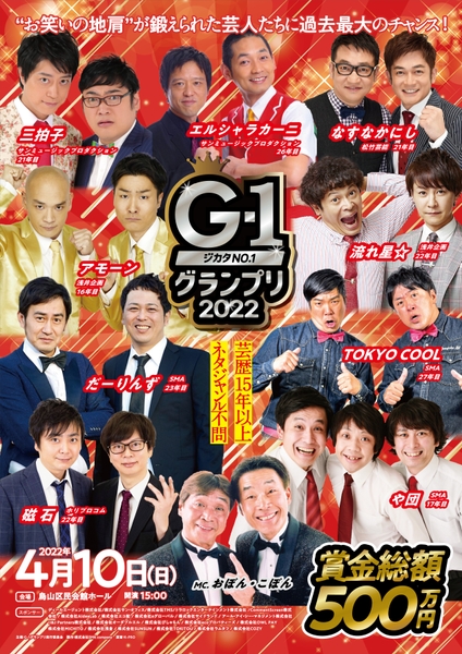 番組企画を伴わないお笑い賞レースとしては、過去最高額(※)ではないかとも思われる 500 万円(※G-1 グランプリ実行委員会調べ)。